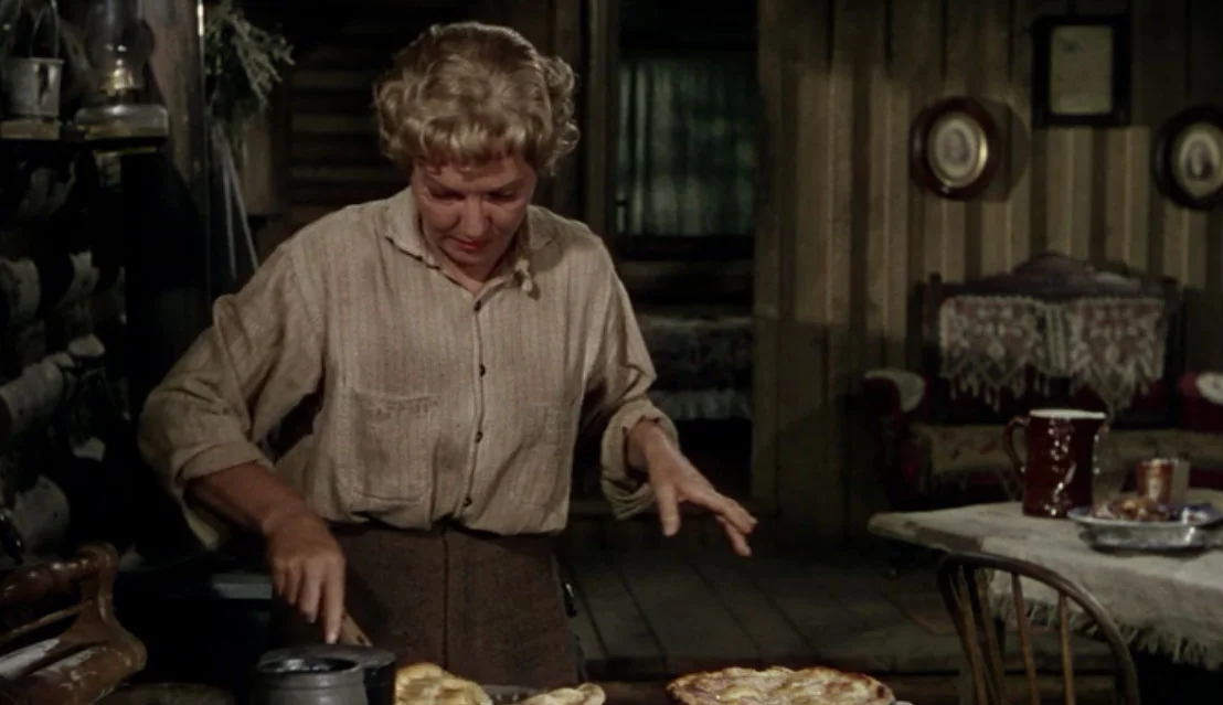 Marian Starrett (Jean Arthur) in Shane (1953) in her Wyoming frontier kitchen, circa 1889.